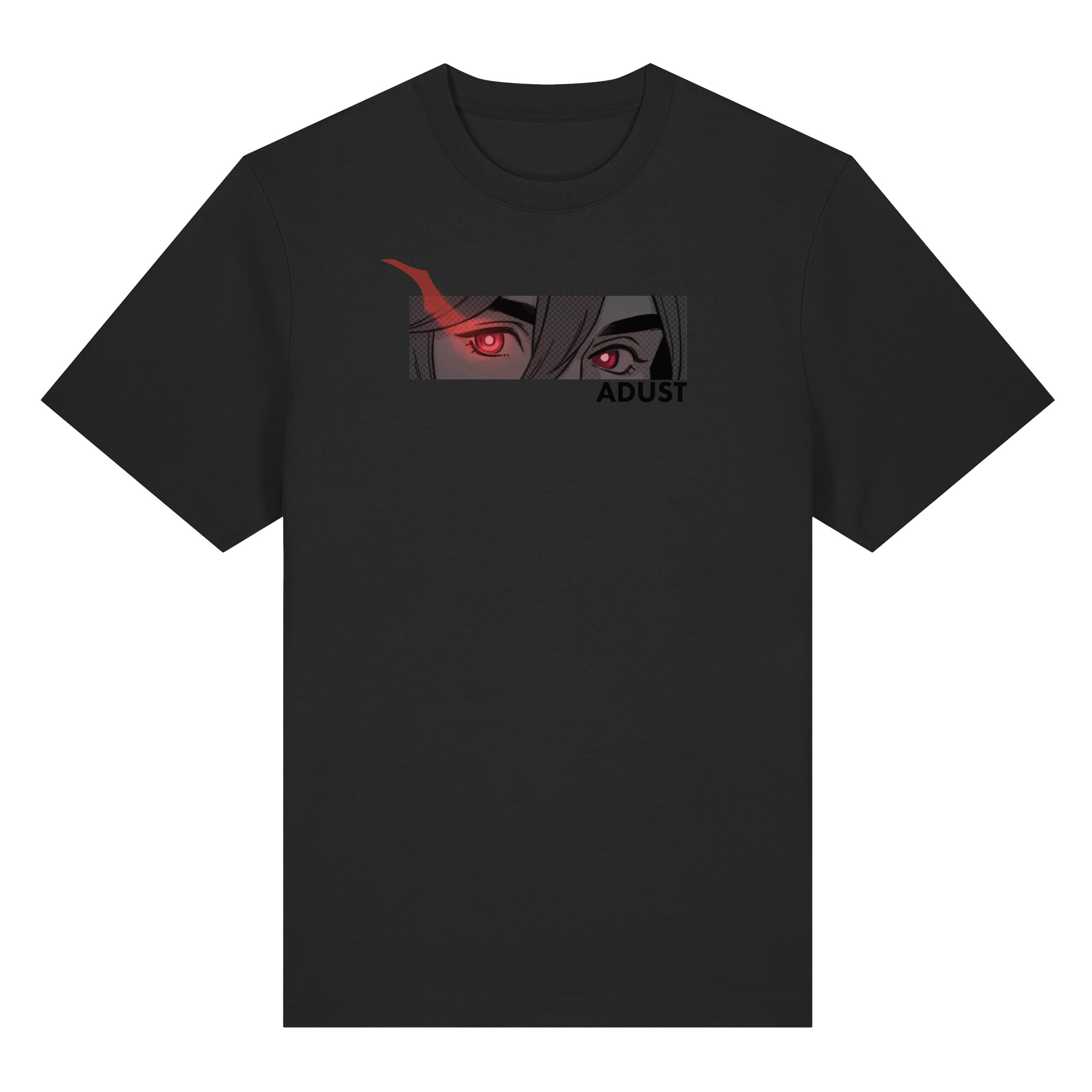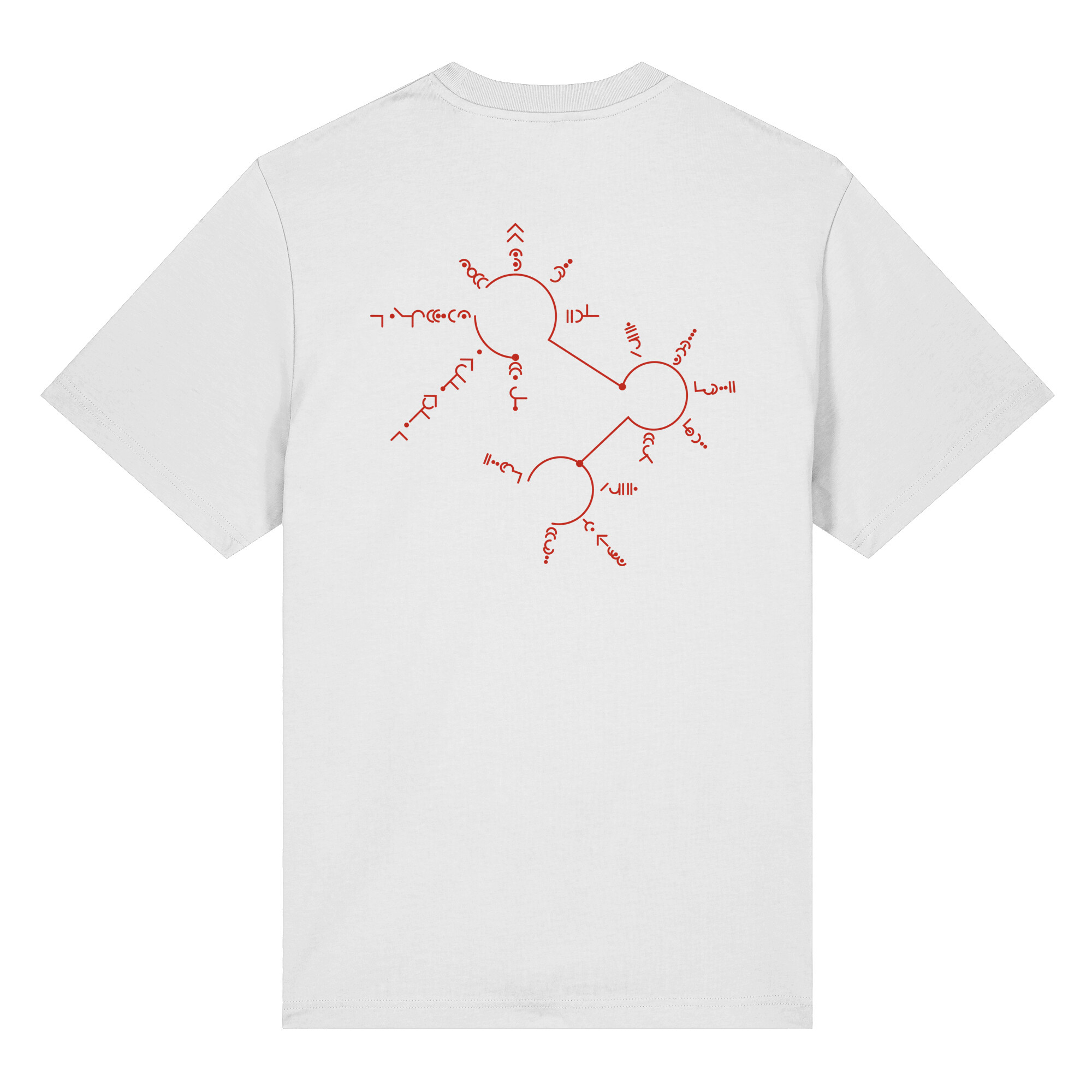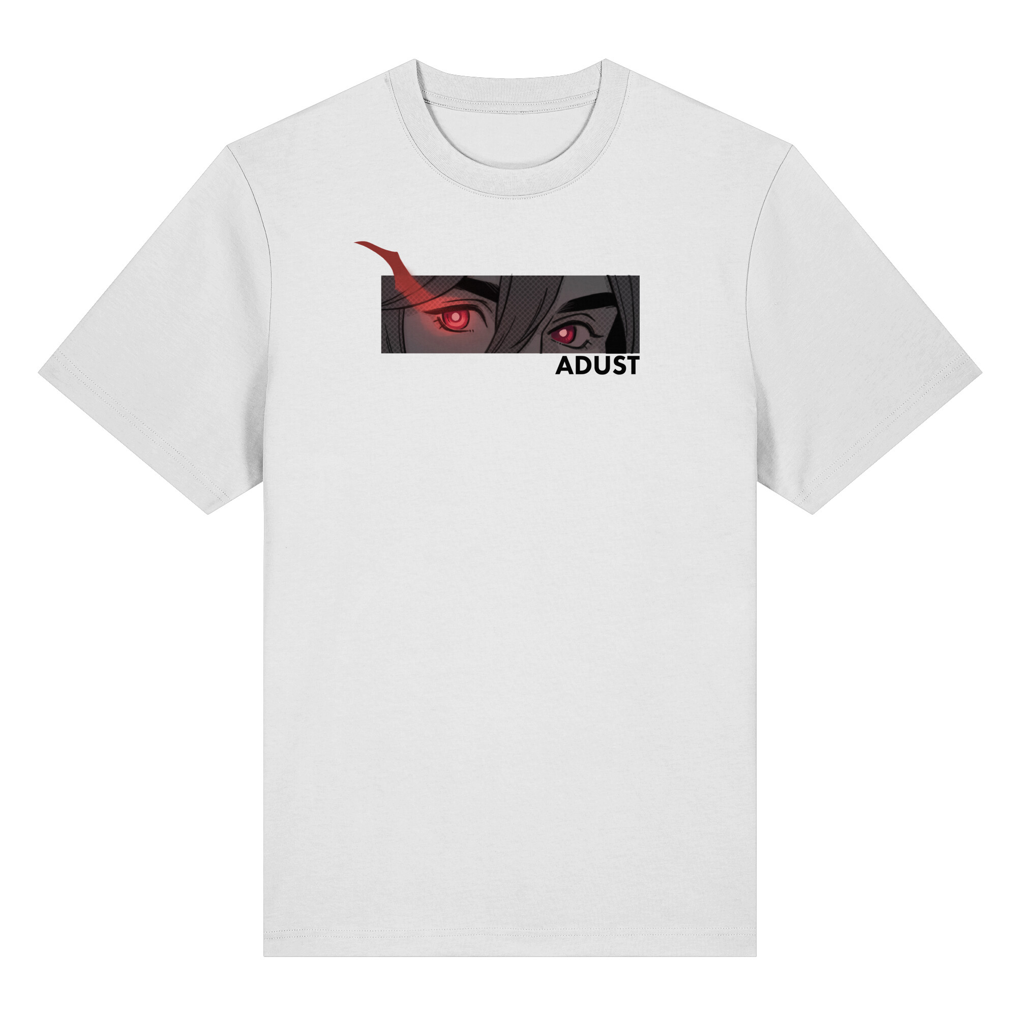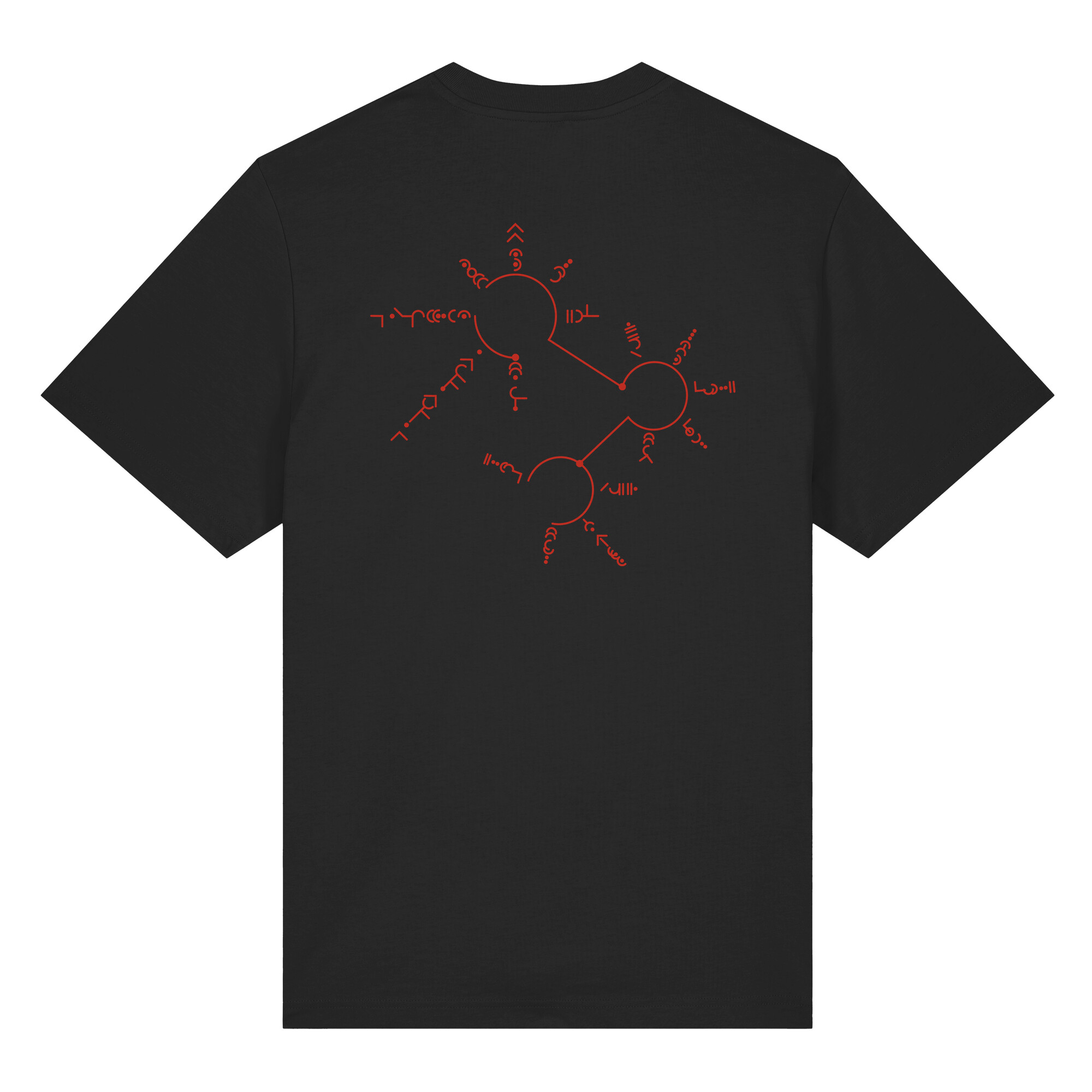 Das Shirt besitzt auf der Rückseite einen weiteren Druck der geheimnisvollen Götterschirft und einen innenseitigen Rückendruck unseren Serienlogos zu ADUST.